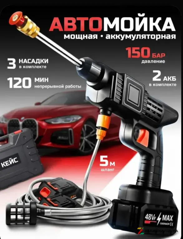 Аккумуляторная мойка высокого давления для автомобиля в кейсе / Портативная, Минимойка с пистолетом и пенообразователем